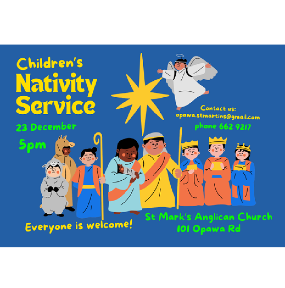 Children’s Christmas Service—5pm on Monday 23 December at St Mark’s Opawa, 101 Opawa Road, Opawa, Christchurch 8023.